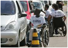 ontem por cadeirantes que levavam aos motoristas mensagens sobre a importância